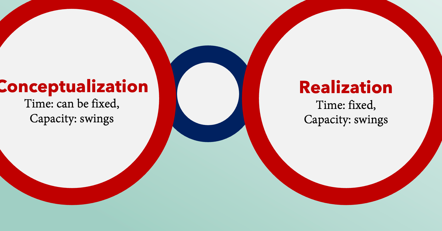 All Realization work is strictly time-boxed. Realization can take 1 day, 2 days or 3 days. 1 day is ideal. Defining the time-box is part of Conceptualization. At the OK Point, the time-box must be agreed upon between Realizers and Conceptualizers.